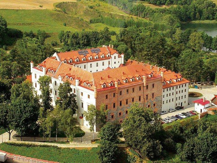 Готичний замок-готель Рін розташований в однойменному містечку Рин і височить на мальовничому пагорбі між озерами Риньське та Олов. Побудований хрестоносцями в XIV столітті, замок пережив кілька війн, встиг побувати в руках тевтонського ордену та прусських завойовників, а після страшної чуми XVIII століття спорожнілий замок продали приватним особам.
