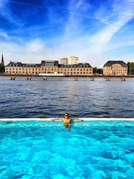 Розташований у Берліні басейн The Badeschiff також відомий далеко за межами міста. Дослівно назву цього басейну можна перекласти як «корабель для купання», він є переобладнаною старою баржею. Відкриття басейну відбулося у 2004 році, його довжина складає 32 метри, а ширина – 8 метрів відповідно. Глибина басейну становить трохи більше 2 метрів. Дивовижний корабель-басейн розташований прямо серед вод річки Шпреї, в теплу пору року під час купання