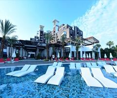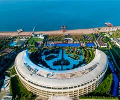 Тури в Белек Авіаквитки Елегантний готель Kaya Palazzo призначений для привілейованих гостей, які знають, що таке справжня розкіш. Проект готелю розробляло відоме архітектурне бюро WATG. Інтер'єри теж можуть похвалитися ефектним дизайном, створеним провідними світовими фахівцями. Більшість номерів мають вигляд на море і розкішну обстановку, а преміум-сьюти - персональні басейни. Однією з родзинок готелю є унікальний комплекс з декількох басейнів, розташований в оточенні прекрасного саду.